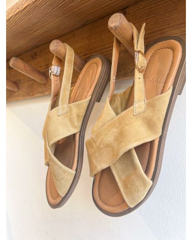 Sandales plates tout cuir avec une semelle effet coussin et des bandes croisées en nubuck extra doux.