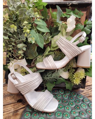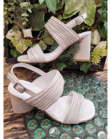 sandale talon et cuir plissé gris clair perlé, tout cuir, grand confort.