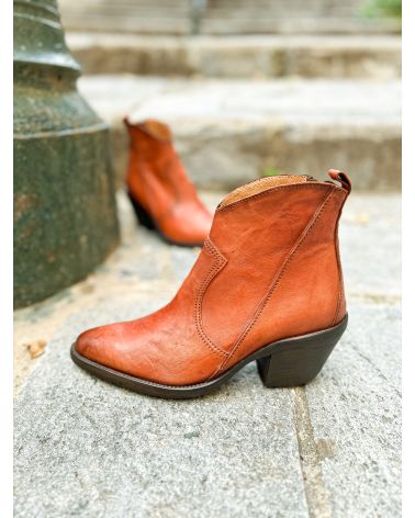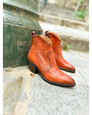 bottine type Santiag, talon de 5cms, tout cuir. tannerie avec plusieurs couleurs au Portugal, pour un effet vieilli.