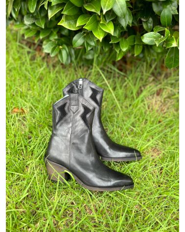Santiags tige haute arrondie avec bout semi-pointu , en cuir et nubuck noir.
