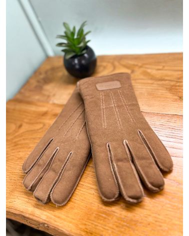Gants en mouton retourné véritable camel.