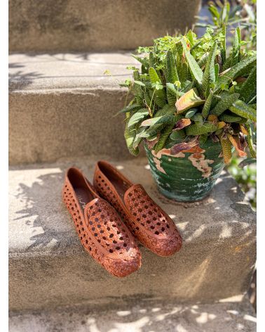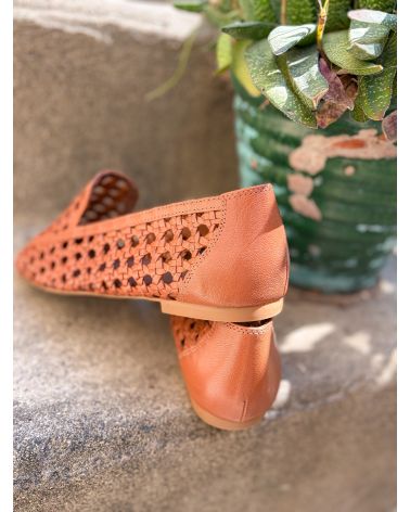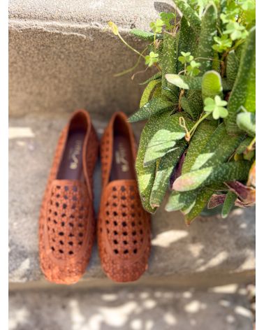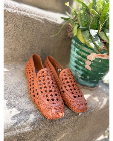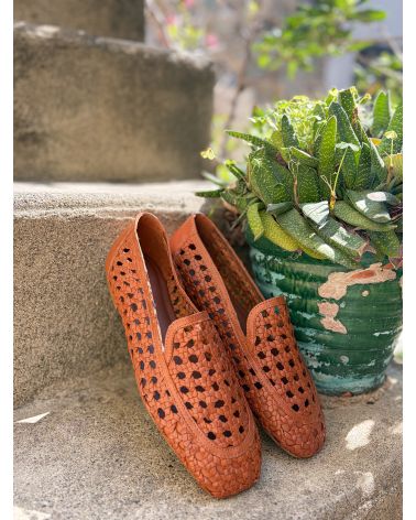 Mocassins en cuir tressé cognac ultra souples, grand confort.